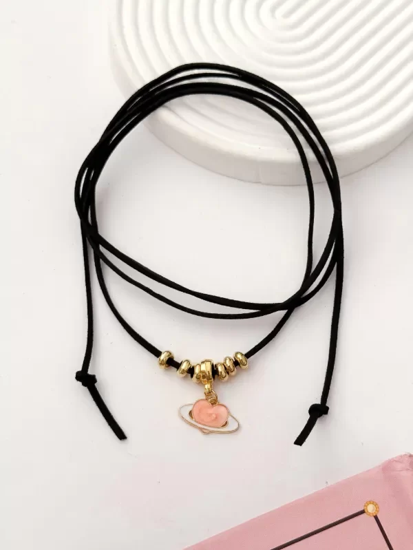 Este choker combina el estilo minimalista con un toque romántico y original. Confeccionado en gamuza negra ajustable, incorpora detalles dorados y un delicado dije.